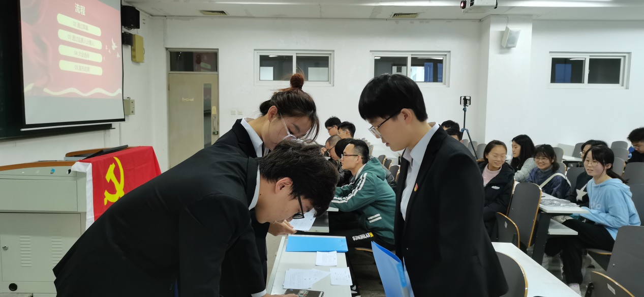 会议伊始,进行了党支部委员会委员的选举投票和新一届党支部委员会会议选举工作,候选人包括历雪瑶同志、刘天宇同志、李思梦同志、苏聪聪同志、黄士嘉同志以及樊灵伟同志。根据投票结果,最终选举历雪瑶同志、刘天宇同志、苏聪聪同志、黄士嘉同志以及樊灵伟同志为学生第五党支部委员会委员,其中樊灵伟同志为党支部书记,历雪瑶同志为党支部副书记。