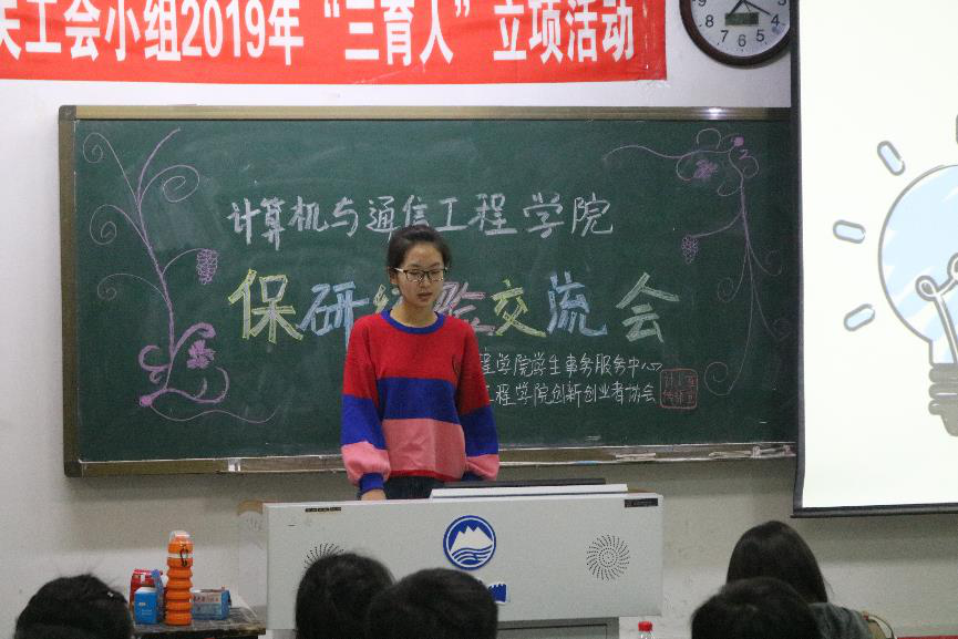 10月26日晚7点,为塑造学校考研文化,加强学风建设,营造升学深造氛围,帮助学生了解保研流程,由best365官方网站登录入口主办的保研经验交流会在工学馆103顺利举行。交流会邀请到了2016级保研学生代表林慧欣、卜凡、马丽霞、李昊沅、刘英卓、冯赛凤主讲。